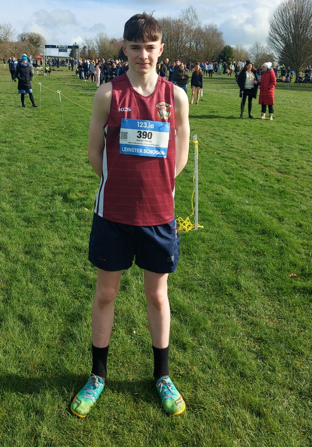 100 athletes took part in the Leinster Final, with Aaron finished in a fantastic 11th place. The top 15 athletes qualified for the All Ireland Cross Country Finals.